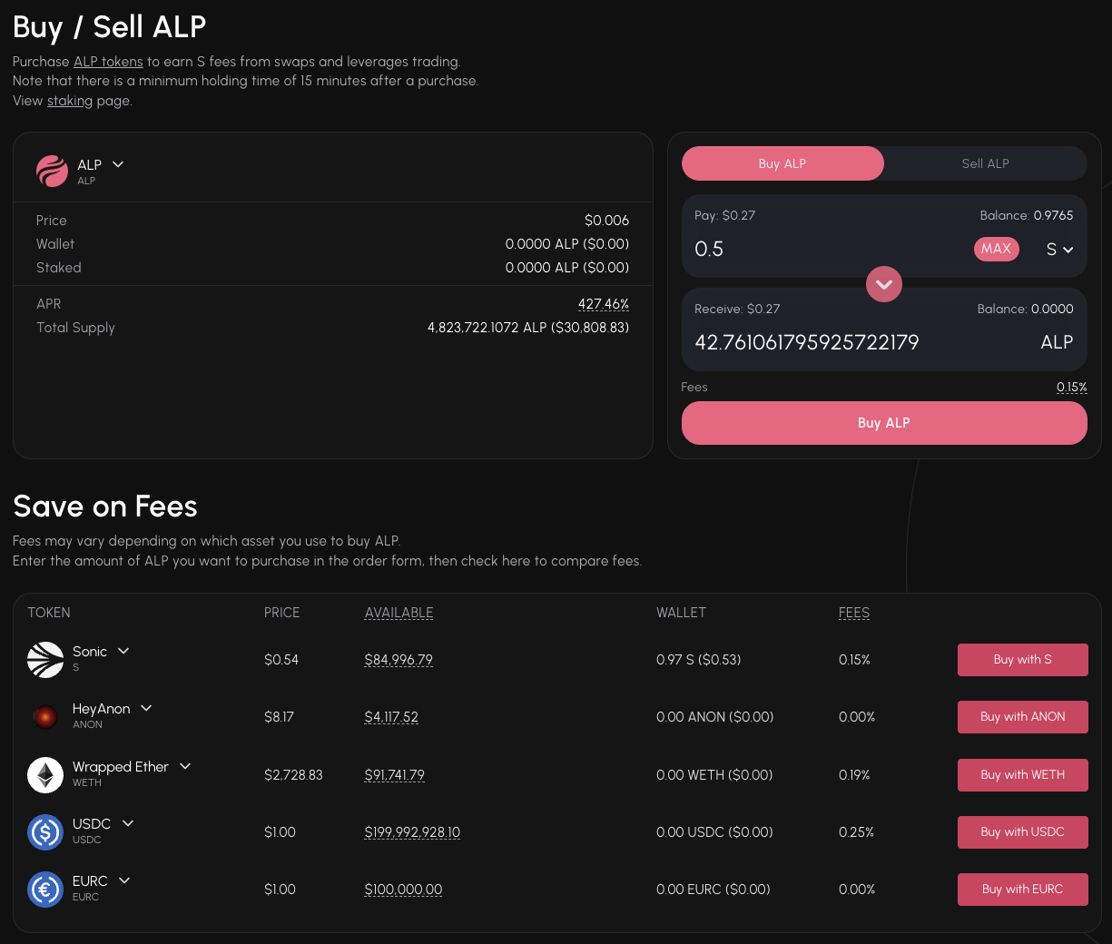 - Fee ALP: Earns protocol trading fees and liquidation fees