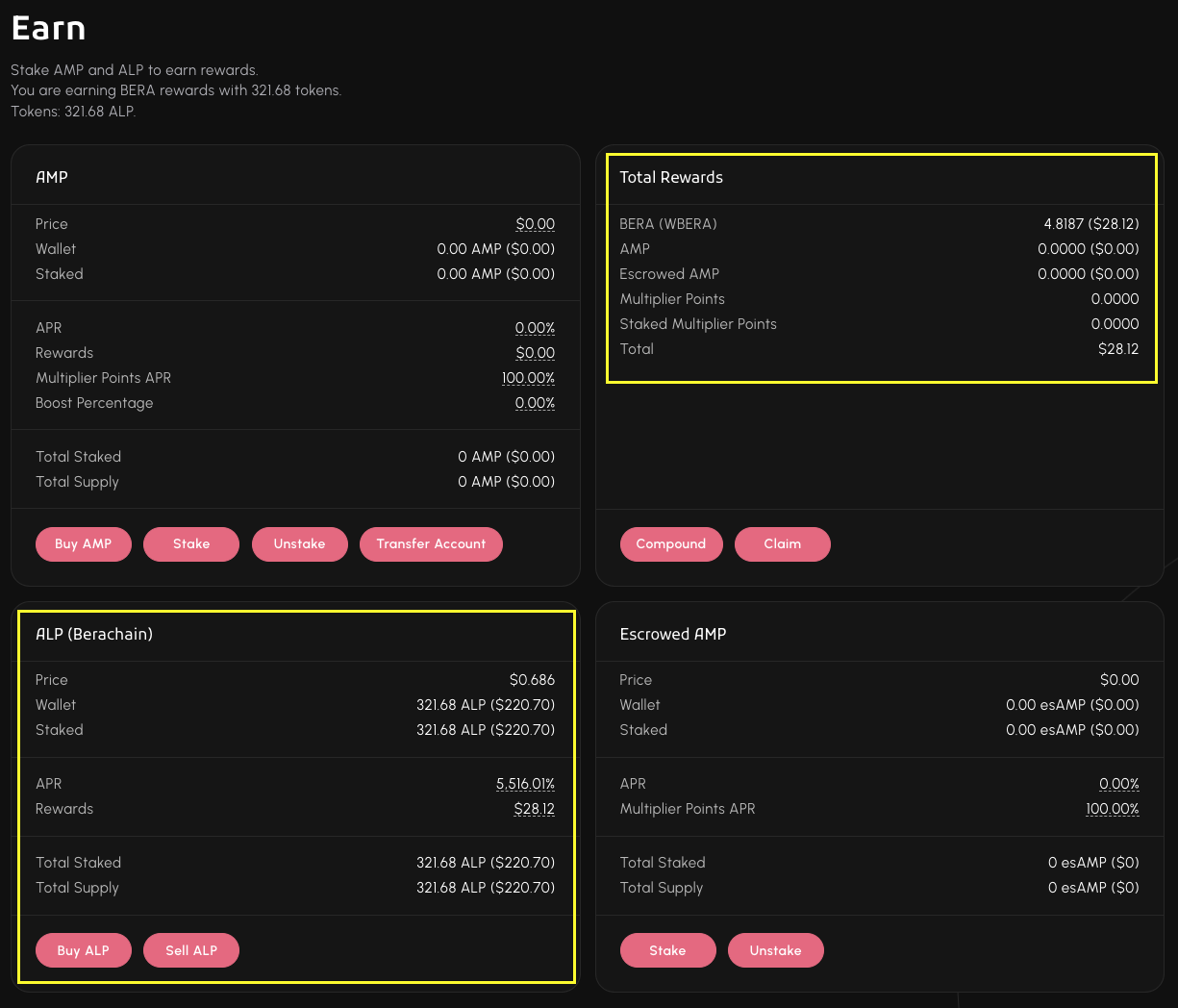 ALP (Amped Liquidity Provider) token represents your share in the protocol’s liquidity pool. When you provide liquidity to Amped Finance, you receive ALP tokens in return. These tokens:- Track the value of your liquidity position